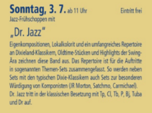 Liebe Freunde der Musik und insbesondere der Jazzmusik von Dr. Jazz,
