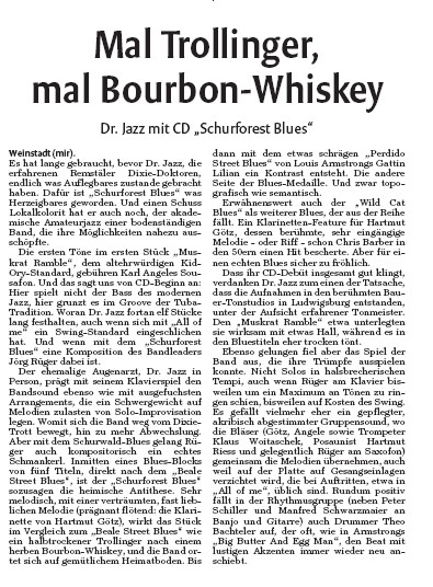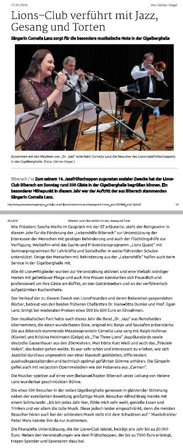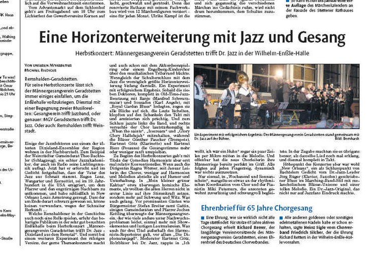 Artikel in der Waiblinger Kreiszeitung vom Montag, den 2.12.2013, über die gemeinsame Veranstaltung MGV Geradstetten trifft Dr.Jazz